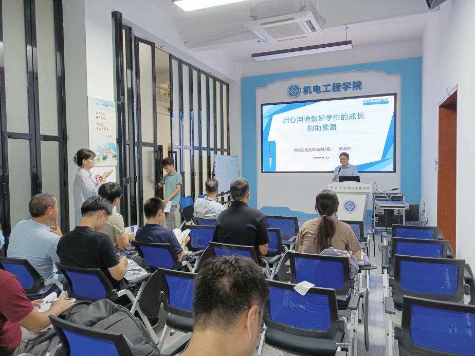 8月31日下午,我院2022级新生班导师会议在机电楼知新阁顺利举行。院党委副书记黄凯、机械制造与自动化系副主任韩奉林教…