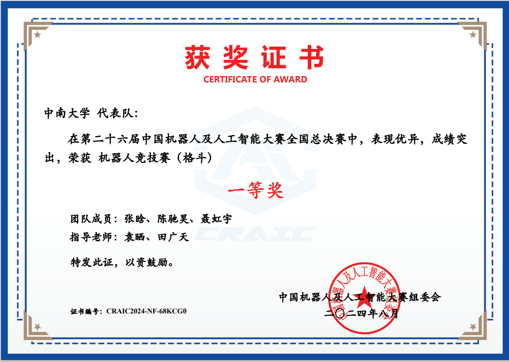 2024年中国机器人及人工智能大赛全国总决赛成绩已于日前公布,由我院张晗、陈驰昊、聂虹宇三位同学组成的中南大学代表队…