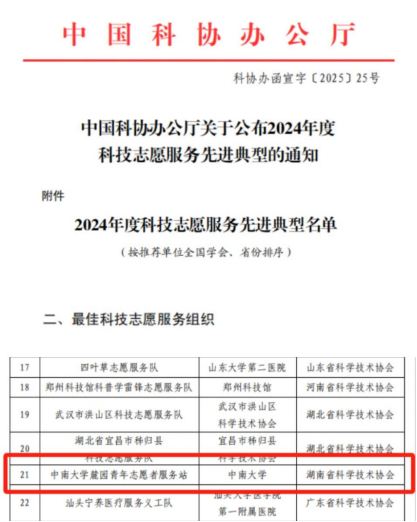 近日,中国科协办公厅发布了《关于公布2024年度科技志愿服务先进典型的通知》,我院麓园青年志愿者服务站获评“最佳科技…