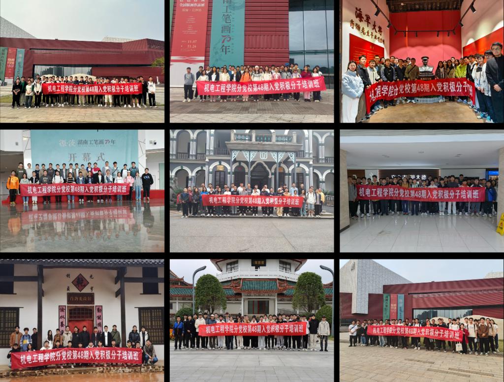 11月11日至11月17日之间,同学们以小组为单位先后前往岳麓山、湖南省美术馆、湖南第一师范学院、肖劲光故居、列士公园、中南大学“党的二十大精神”学习体验课堂等校内外实践基地开展社会实践教学活动,同学们表示:“这些实践活动激发了我们的爱国热情和民族自豪感,同时也让我们学习了许多党的理论知识。我们要弘扬爱国主义精神,把个人的理想追求与国家和民族利益紧密结合起来。”同时以“为什么要加入中国共产党”结合自身实际展开分组讨论。11月18日下午,机电工程学院分党校入党积极分子培训班结业考试在新校区教学楼D座顺利举行,至此,分党校培训任务全部完成。