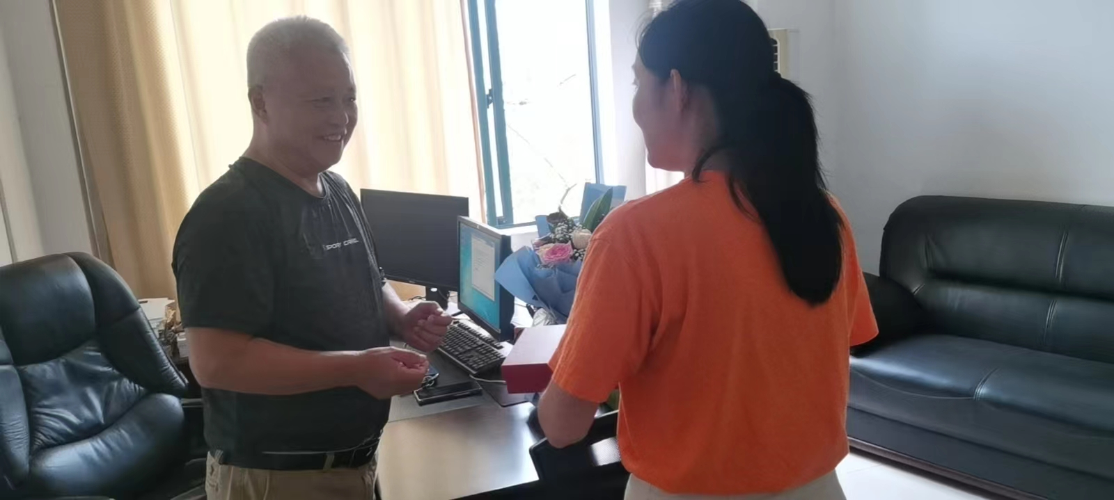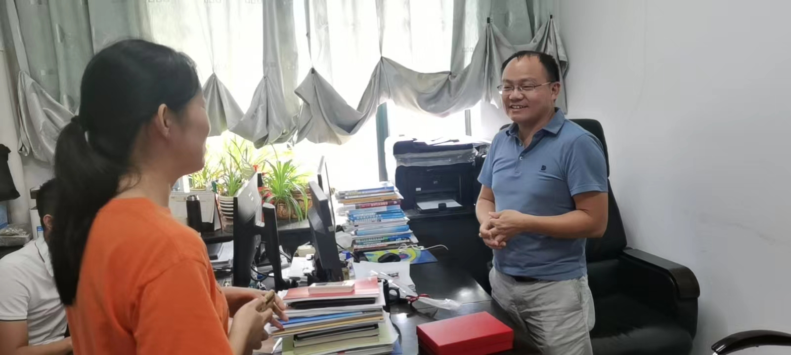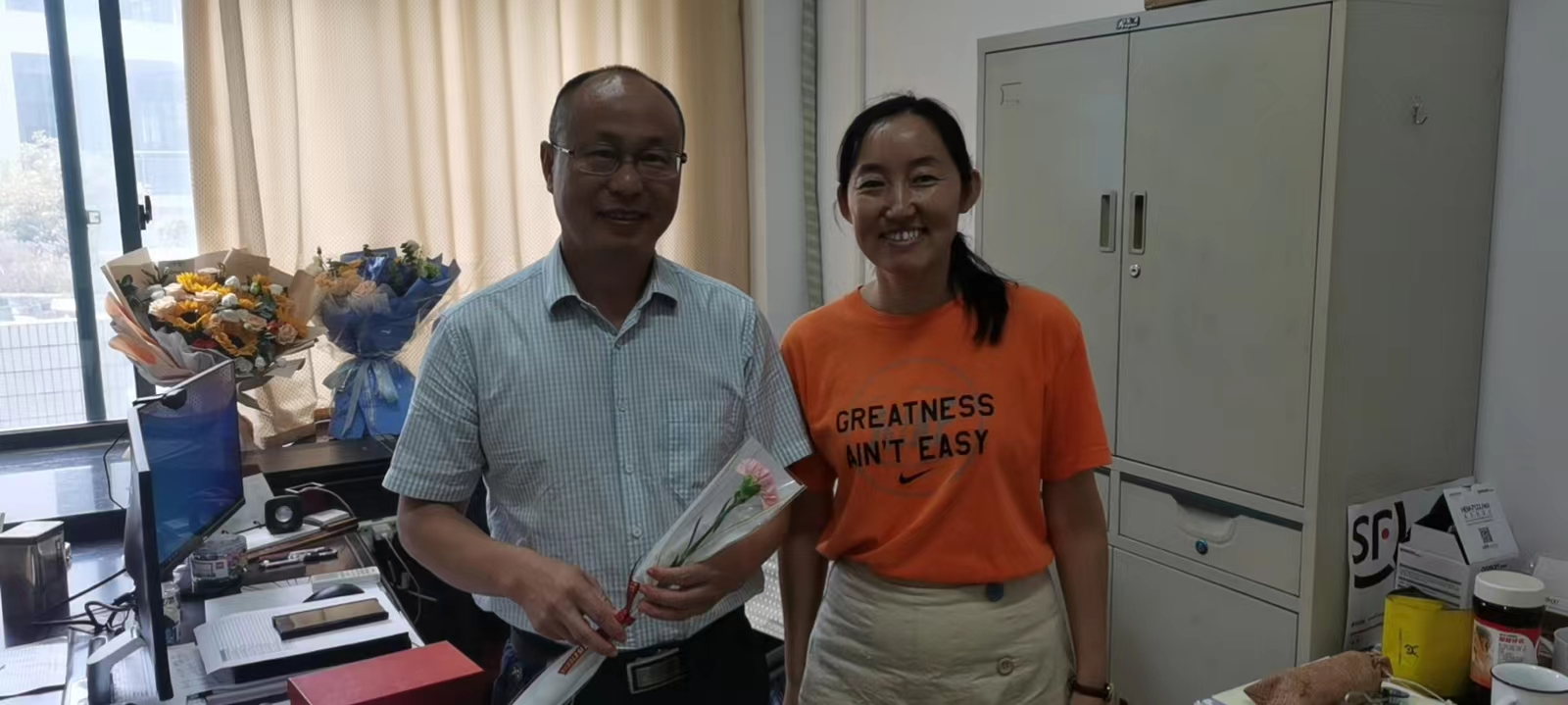 9月9日下午,孙小燕副院长受学院委派在老师办公室慰问了桃李芬芳 感恩奉献 从教四十周年的王艾伦教授、李晓谦教授、唐进元教授。言传身教 孜孜不倦 从教二十周年的李军辉教授、帅词俊教授、杨忠炯教授、李松柏副教授、陈敏副教授等一线教师送去节日祝福,并致以崇高的敬意。