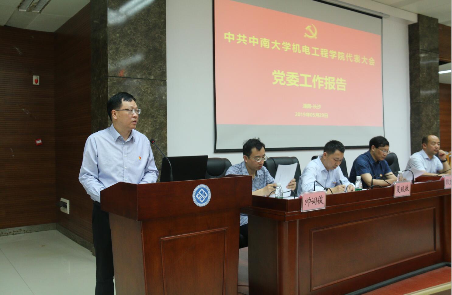 5月29日下午3点,中共中南大学机电工程学院代表大会在新校区机电楼B214报告厅顺利召开。校党委组织部副处级组织员张志宏、机电院全体院领导以及119名党代表和3名特邀代表参加大会。大会由院党委副书记黄凯同志主持。