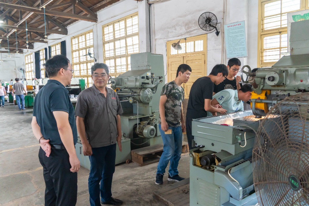 肖来荣书记与学生亲切交谈,了解他们在实习中学到的技能,鼓励大家发扬不怕苦、不怕累的精神,珍惜学习机会,严格遵照实习操作规程,注意安全,求学好问,顺利完成实习任务。