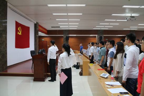 学院党组织干事何建仁老师,宣读2017年上半年预备党员按期转正名单、2017年新党员名单。预备党员进行了庄严的宣誓仪式,全体党员重温入党誓词。学生微电子支部杨宇峰同学代表新党员发言,他表示入党是荣耀更是责任,新党员应该以今天表彰的优秀党员为榜样,在党的领导下为新时代祖国的发展做出自己的贡献。