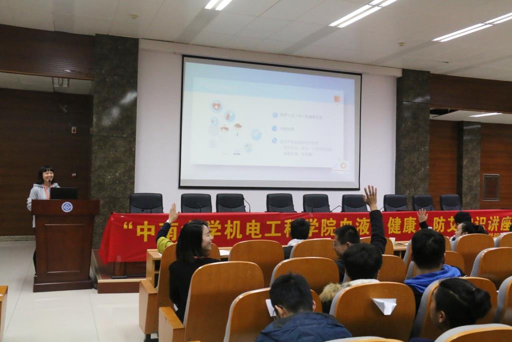 为普及献血及学业健康知识,加强学生防艾意识教育,11月25日上午,我院在机电楼B214报告厅举办了主题为《关于血液-你不知道的那些事》的健康知识讲座,邀请到湖南省血液中心(长沙血液中心)工作人员陈惠甦担任主讲人,300余名师生聆听了报告。