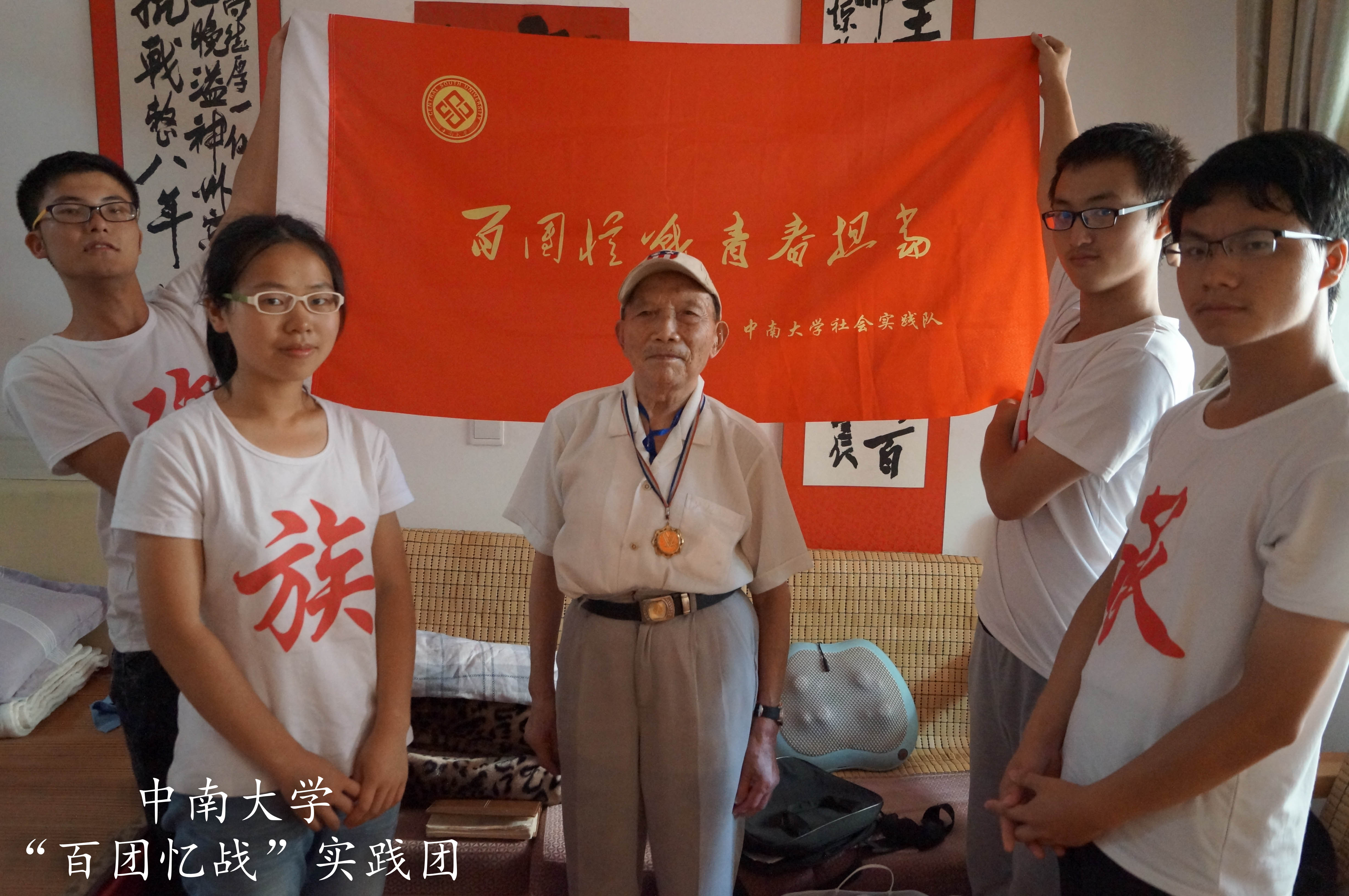 在抗战胜利70周年之际,追溯抗日战争的历史足迹,缅怀革命先烈艰苦奋斗、英勇无畏的抗战精神,中南大学机电工程学院暑期社会实践团队来到了长沙市望城区安华山庄抗战老兵照护中心,开展了“百团忆战,青春担当”社会实践活动,采访了102岁的抗战老兵王光亚同志。