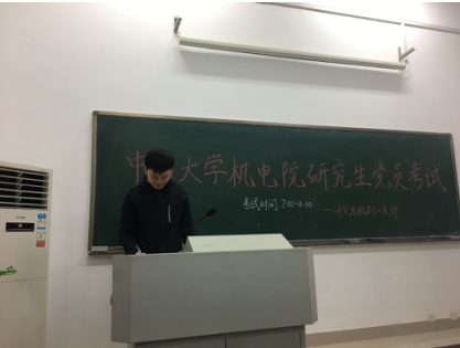 在深入学习十八大以来一系列治国理政的关键词后,各研究生党支部自主举行闭卷考试。考试过程中,大家都认真思考,沉着应答。除去因公出差的小部分党员,其他研究生党员均参加了考试,而且取得了不错的成绩。通过此次学习和考试,增强了我院研究生党员的身份意识,提高了党员的思想素质,刷新了党的知识库,使机电院研究生党员对十八大以来提出来的许多治国理政的关键词和最新的治国理念、大政方针有了更深层次的理解。