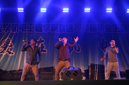 灯光点亮绚丽舞台,歌舞放飞青春梦想。6月1日下午7点,机电工程学院“爱在机电”2013届毕业生晚会在南校电影院准时开演。出席晚会的嘉宾有中南大学学工部李景升部长、机电工程学院党委李登伶副书记,机电工程学学院王艾伦副院长、张怀亮副院长、湛利华副院长,院关工委刘世勋常务副主任及其他老师。他们和全体09级毕业生及其他年级的机电学子共同观看了此次晚会。