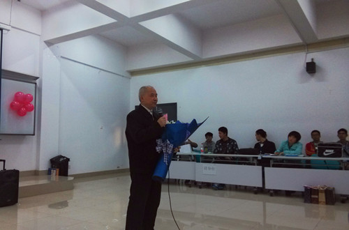 在参赛班级展示完毕后,吴献成老师应邀对大赛作出点评。他首先对同学们能够在三个月的时间里就能有如此默契表示赞赏和欣慰,并点出了大赛的三个特点即标识性,丰富性,活动性。最后他指出了同学们的不足之处,希望同学们能将个人梦与中国梦结合起来。随后马跃如老师亦作出点评,并提出对同学们未来的期望。