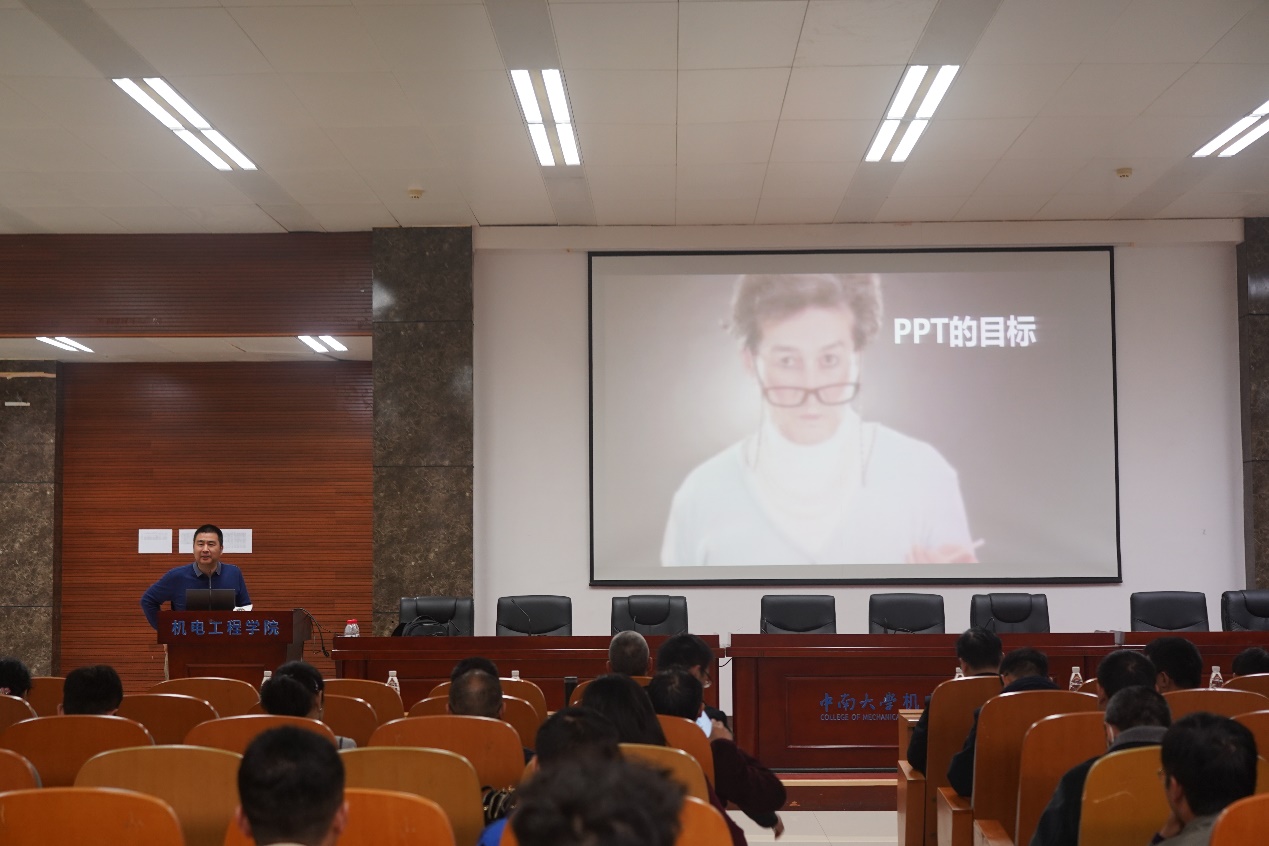 本次专题会议由机电工程学院课程思政教学研究中心委员欧阳鸿武老师主持,学院党委书记肖来荣、副院长帅词俊及学院70余位老师聆听了报告。