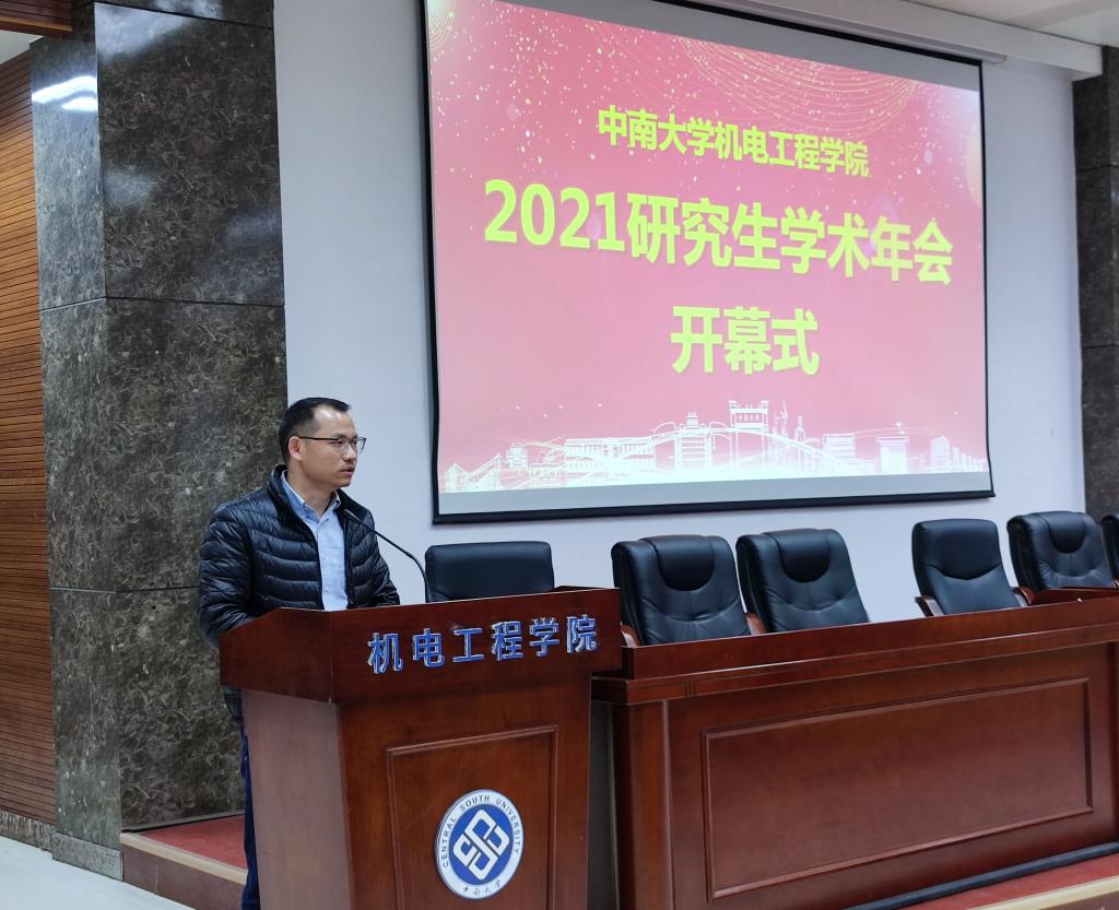12月24日上午8点,学术年会开幕式在机电楼B214举行,学院党委书记肖来荣教授、分管研究生工作副院长蔺永诚教授出席,导师代表及学生参加,开幕式由研究生管理办公室主任莫玲老师主持。