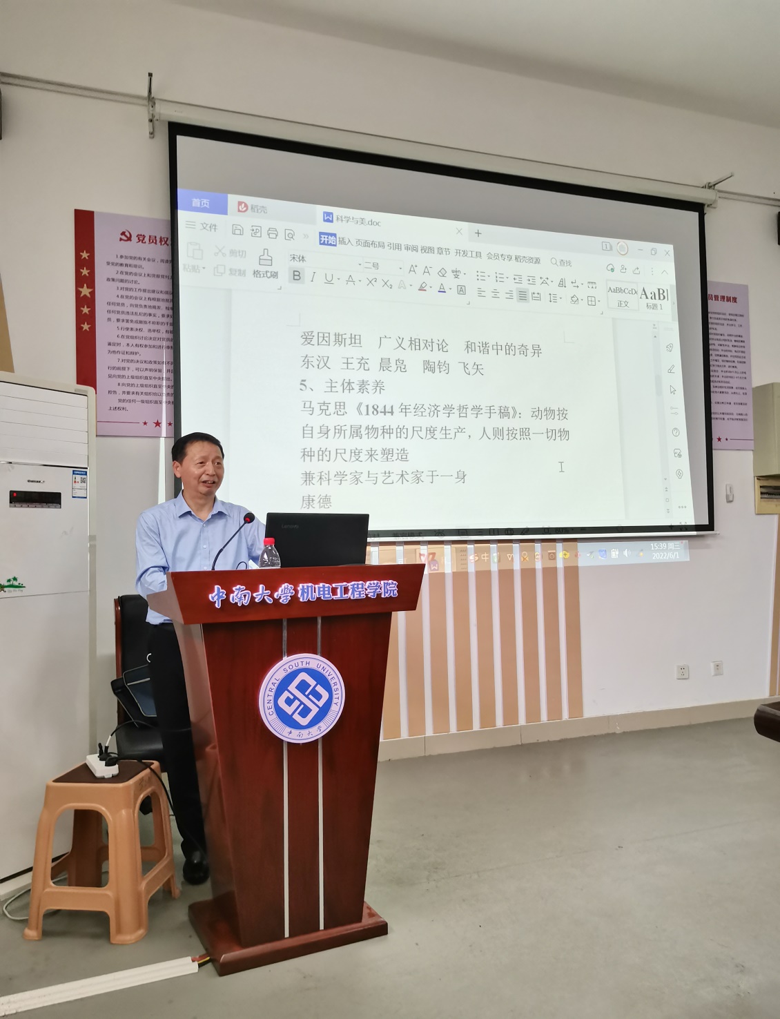 6月1日下午,中南大学文学与新闻传播学院刘泽民教授受邀莅临我院人文讲堂第十一讲现场,为机电学院师生作题为《科学与美》的讲座。