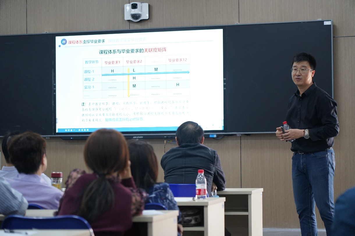 在最后讨论阶段,我院老师纷纷提出自己的问题与看法,贾老师也针对问题做出了明确回答。期间,教发中心主任金一粟老师共同参与话题,从学校层面上为老师们解惑,会场气氛十分热烈。通过本次会议,我院老师们明确了如何更好的定制教学大纲,明确了应根据培养目标和毕业要求,课程教学大纲要突出“学生为本”和“产向导出”,以学生能力培养为重点。通过贾老师生动幽默的演讲,本次会议在热闹的气氛中圆满结束。