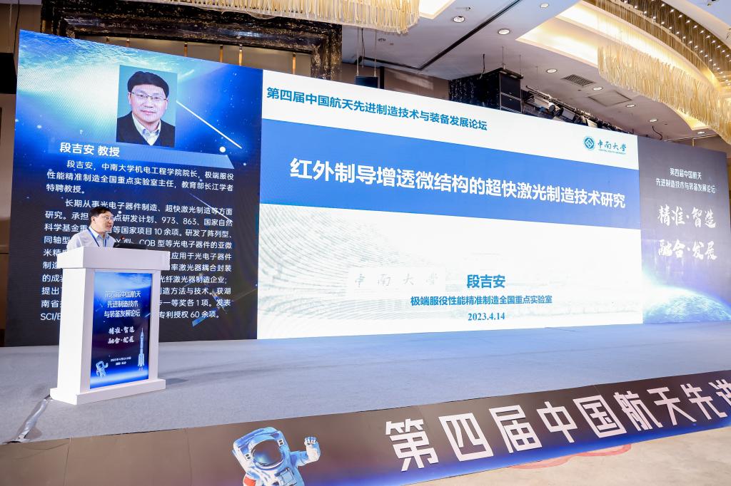论坛会上,我校极端服役性能精准制造全国重点实验室主任段吉安教授、实验室成员张劲研究员分别作了红外制导增透微结构的超快激光制造技术、高强铝锂合金构建性能调控技术的报告。