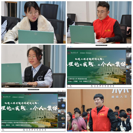 云南农业大学机电工程学院吕俊航、杨林山两位同学分别从科技创新、学风建设两个方面阐述了卓越领航团、耕读教育及劳动实践的典型经验。