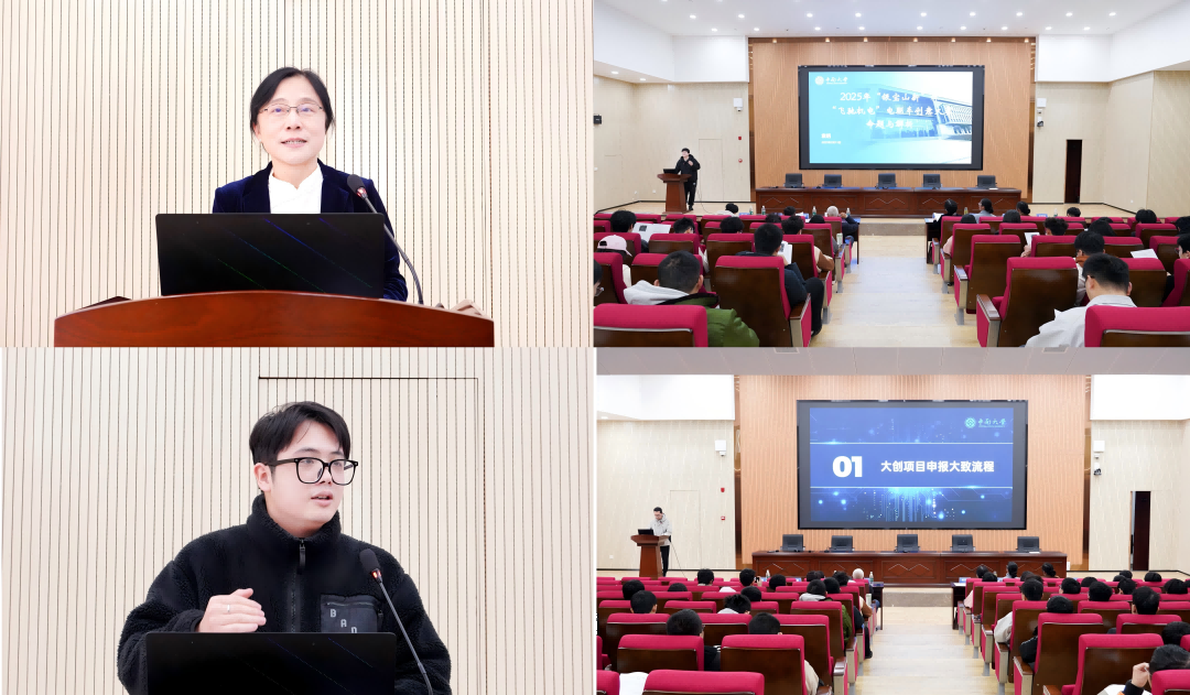 活动聚焦“以赛促学、以创致用”主题,设置科技作品现场观摩、专题分享、赛事发布与主题报告四个环节。机械T2101班陈驰昊和机械T2201班徐立豪分别就学科竞赛和大学生创新训练两个方面结合自身案例,提供精准指导;袁晒老师发布2025年“璇玑”科技节“飞驰机电”电驱车创意大赛命题、进行解析,为参赛学生答疑解惑。