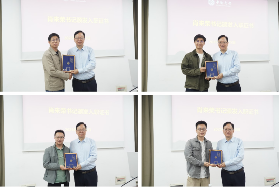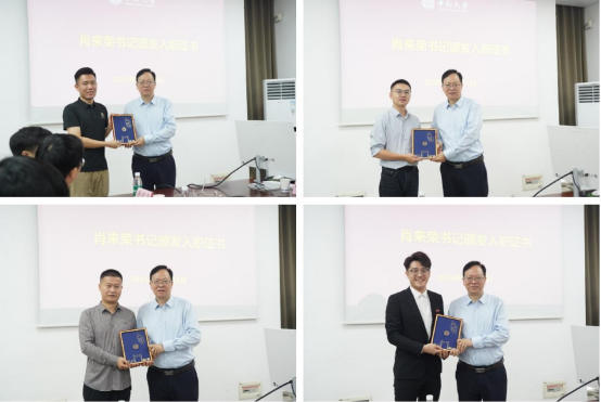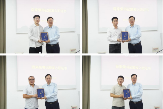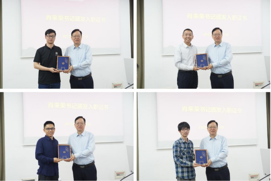 随后,党委书记肖来荣为新进教师颁发入职证书,并欢迎大家加入机电工程学院大家庭。