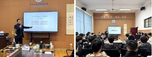 讲座中,吴步畅先生巧妙衔接古代经典与现代科学,为师生构建了完整的茶学知识体系。他以茶圣陆羽《茶经》“茶者,南方之嘉木也”的经典论述开篇,生动阐释了茶的植物学特性与文化象征;详细解读了《茶经》中关于宜茶土壤“上者生烂石,中者生栎壤,下者生黄土”的智慧。