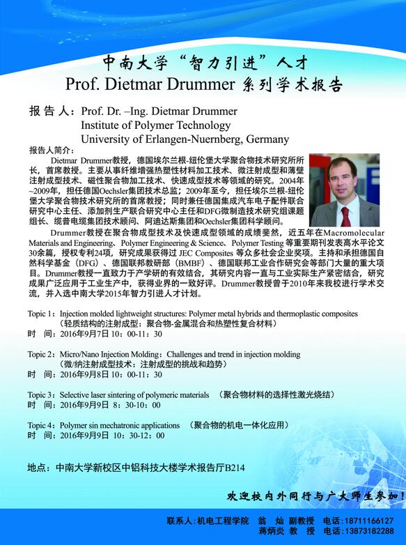 中南大学“智力引进”人才Prof. Dietmar Drummer系列学术报告